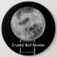 Botão da bola de cristal que diz: Leitor da bola de cristal. Para o místico em você ou na bruxa em seu amigo. Desgaste orgulhosa todo o ano, não apenas para o Dia das Bruxas.