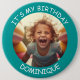 Foto personalizável e nome - É O MEU ANIVERSÁRIO - botão. Quadro teal com letra branca.