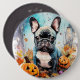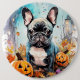 Bóton Redondo 15.24cm Bulldog Francês Halloween Com Pumpkins Assustado