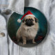 Bóton Redondo 15.24cm Cachorro Pekingês no Natal da Neve