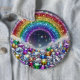 Bóton Redondo 15.24cm cinza, arco-íris com joias