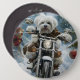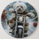Bóton Redondo 15.24cm Coton De Tulear Cachorro Dirigindo Motocicleta Nat