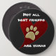 This best friend button features a large red painted heart along with a glittery gold paw print letting everyone know that your dog is your best friend. The elegant print appears within the artistic heart. Brushstrokes form diagonal lines on the heart and the golden paw print adds a sparkle to the design. "Not all best friends are human" can easily be customized to suit your needs.