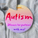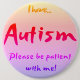"Eu tenho AUTISMO, por favor, seja PACIENTE comigo!" Grande Crachá de Consciência do Autismo Inclusivo