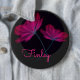Bóton Redondo 15.24cm Flores Negras e Rosa Modernas Femininas Elegantes