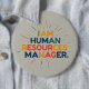 Este botão redondo orgulhosamente declara "Eu sou gerente de recursos humanos." Perfeito para que os profissionais de RH vistam em conferências, seminários ou no escritório, este botão mostra seu papel e sua expertise. Feito de materiais duráveis, é uma forma na moda e prática de se identificar.