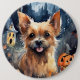 Bóton Redondo 15.24cm Halloween Australiano Terrier With Pumpkins Scary