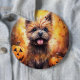 Bóton Redondo 15.24cm Halloween Cairn Terrier Com Pumpkins Assustado
