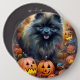 Bóton Redondo 15.24cm Halloween Keeshond Com Pumpkins Assustado