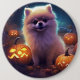 Bóton Redondo 15.24cm Halloween Pomeranian Com Pumpkins Assustado