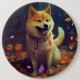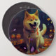 Bóton Redondo 15.24cm Halloween Shiba Inu Com Pumpkins Assustado