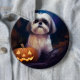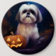 Bóton Redondo 15.24cm Halloween Shih Tzu Com Pumpkins Assustado