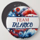 Political statement button that says, "Team Talarico" for the next president of the United States with an abstract American Flag background.