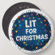 Light up the holiday season with this fun and festive Christmas design! Featuring the bold phrase “LIT FOR CHRISTMAS” in crisp white lettering, the text is wrapped in a vibrant string of multi-colored Christmas lights that add a warm, cheerful glow. Set against a deep blue background with sparkling stars and scattered dots, this circular, sticker-style design captures the magic and excitement of the season. Perfect for anyone who loves playful holiday decor, bright lights, and modern Christmas vibes.