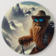 Sasquatch é visto em uma aventura caminhando de picos de montanha muito altos e cobertos de neve, fazendo um chapéu, óculos de sol, mochilas traseiras e postes de caminhada...