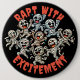 Se você acha que Hallowe'en é um dos dias mais divertidos do ano, então esse botão baleeiro, que apresenta a observação péssima "Rapt with Entusiasmo" estilhaçada em uma fonte assustadora em laranja-abóbora e múmias dançantes bonitinhas geradas por AI celebrando sua grande noite — é perfeito para a época mais assustadora do ano! Design © W.H. Sim. Mais informações em zazzle.com/word2art