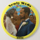 Newly Weds é a mensagem que este botão redondo anuncia ao mundo e este botão pode ser personalizado. Substitua a imagem por sua própria imagem de casal e adicione sua mensagem, nome e data. Estes botões atrativos permitem-vos fazer mais do que expressar apenas uma opinião política. Já que você pode adicionar seu texto, você pode expressar praticamente qualquer coisa em que possa pensar. Comece a criar um incrível talento hoje! Disponível em 5 tamanhos de 1,25 a 6 polegadas de diâmetro e coberto com risca e Mylar resistente a UV. Botões quadrados também estão disponíveis, feitos nos EUA.