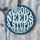Bóton Redondo 15.24cm Ninguém precisa de um Presidente estúpido