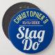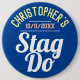 Para celebrar uma despedida de solteiro ou Noite dos Rapazes Solteiros. Concebido para alguém que está tendo uma despedida de solteiro! Um botão com a data do evento. Distintivo de despedida de solteiro. Adicione o nome da pessoa cuja festa é. Adorno da noite do noivo.