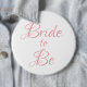 Lindo botão de script rosa elegante para o seu chá de noivas, despedida de solteira. Use todos os dias antes do casamento, se desejar. As pessoas verão este botão bonito e lhe desejarão “Parabéns” pelo seu casamento.