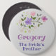 Apresentando o Irmão da Noiva - um Crachá de Botão com o nome e uma ilustração floral. Crachá de identificação de casamento.