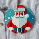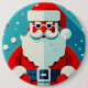 Botão alegre do Papai Noel em um pano de fundo vermelho e azul brilhante, capturando o espírito da época de férias.