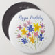 Feliz aniversário com flores de aquarela num alfinete.