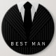 © Sunny Mars Designs - Pinstripe Suit: Black and Gray Round Best Man's Badge - Cool, custom, classy, elegant, stylish bachelor party best man round pin-back button with a masculine illustration of the front of a man's business black and gray pin stripe suit, a black tie and buttons. Perfect gift for your best man, groomsman, usher, ring bearer or any male in your wedding party to wear at your bachelor party.