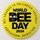 Faça do May 20 (Dia Mundial da Abelha) um evento memorável com este botão comemorativo, que apresenta o tema de 2024 "Bee Engaged in Pollinator-Friendly Agricultural Production" rodeando as palavras World Bee Day 2024 com uma abelha de mel estilizada pairando sobre a letra B. Copy and Layout © W.H. Sim. Todos os Direitos Reservados. Mais informações em zazzle.com/expressionsoccasions