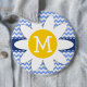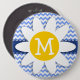 Bóton Redondo 15.24cm Primavera Daisy; Padrão de Chevron Azul
