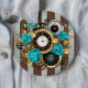 Bóton Redondo 15.24cm Relógio e Rosas de Turquesa em Striping