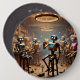 Futuristic robots enjoying a lively night at a neon-lit bar, sharing drinks, laughter, and music. A perfect blend of technology and fun, creating a unique cyberpunk party atmosphere.