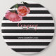 Bóton Redondo 15.24cm Rosa Floral Black & White Stripes - Botão