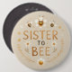 Celebre a futura irmã mais velha com este botão "Irmã a Abelha"! Projetado com amor, este botão apresenta texto divertido, uma abelha fofa e um anel de flores delicadas — perfeito para presentes de chá de fraldas ou como um doce anúncio. É uma maneira deliciosa de honrar o novo papel que ela está prestes a desempenhar. Deixe-a vestir com orgulho e zumbido com entusiasmo para a nova chegada!