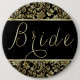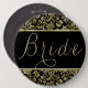 Os damascos de brilho preto e dourado legantes fazem texto personalizado - noiva - botão. Se precisar de ajuda para personalizar qualquer um dos meus designs, entre em contato com o designer do ArtOnWear. Formatação de texto livre com ajuda ao vivo disponível por solicitação.
