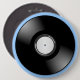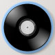 Um botão azul redondo na moda no estilo retro, com uma ilustração de um registro de vinil velho. Disponível em outros tamanhos.