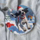 Uma espiritual Wirehaired Pointing Griffon corre alegremente através da cena de inverno de neve, vestindo um chapéu de Natal vermelho festivo. Este design realçou a casaco, herança da caça e a personalidade afetuosa da raça, enquanto capta o calor e a alegria da época de férias. Um cheio de charme festivo no inverno.