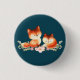 Botão com desenho de 2 raposas vermelhas. Um de pé no outro deitado. Desenhado com aquarela.