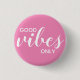 Bóton Redondo 2.54cm Apenas Boas Vibrações Afirmação Positiva Rosa e Br