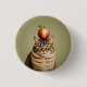 Gato engraçado com uma maçã balançando em cima de sua cabeça.