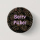 Fotografia de muitas amoras pretas impressas nas bordas do botão com texto personalizável, "Berry PIcker" impresso no centro.