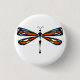 Uma libélula Mão-esboçada em cores prismáticos do vitral flits graciosa através deste botão.