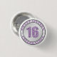 Purple Sweet XVI (16) milestone Botões de Aniversário com uma ilustração brilhante impressa para o "16" num emblema "SWEET SEXTEEN CELEBRATION".
