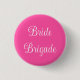 Botão de lapela acessório de moda divertido e casual com fundo na cor rosa quente e "Bride Brigade" em texto branco tipografia lettering design pela loja TheFabricSeal print on demand no Zazzle.com #ZazzleMade https://www.zazzle.com/store/thefabricseal TheFabricSeal. Original.