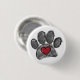 Impressão de pata de cão e aquarela cardíaca em vermelho, preto e cinza. Botões personalizados para casas e empresas. Ideia de presente para amantes de cães.