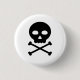 Crachá com um design contendo o desenho simples de um crânio e ossos cruzados. A cor do preenchimento e traçados (bordas) do crânio e dos ossos, bem como o tamanho, podem ser alterados para sua preferência na seção "Editar este design".