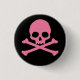 Bóton Redondo 2.54cm Caveira Rosa Simples e Crossbones