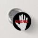 Botão de pino de texto personalizado negrito branco vermelho Ceasefire branco vermelho mão preta negrito. Texto vermelho, mão branca, fundo preto. Texto totalmente personalizável. Conflito no Médio Oriente/Gaza.