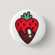 Este design de botão de pinback de Dia de os namorados divertido apresenta um morango desenhado pela mão, em forma de coração, mergulhado em chocolate.