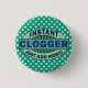 Este design de botões bonitinho para os dançarinos de entupimento diz "Clogger Instantâneo: Apenas adicione música." É um design em forma oval em tons de verde, azul e branco com notas e listras musicais. O fundo é azul-verde com bolinhas brancas. É um botão bonito para o ventilador dançante. Veja variações e mais designs de entupimento no nosso link de compro!
